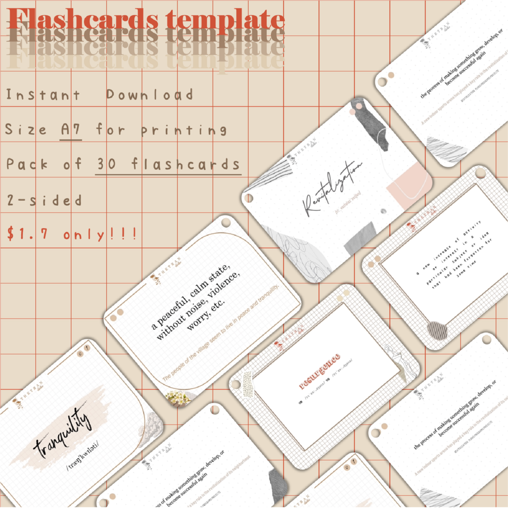 ❁ Your Purchase includes 1 PDF File: 30 2-sided flashcards size A7 (74x105mm).