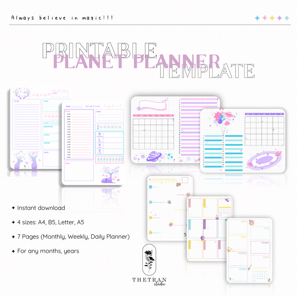 Planet Planner Set Template | Printable Digital Instant Download A4 A5 B5 Letter | Planejador Mensal Imprimível
