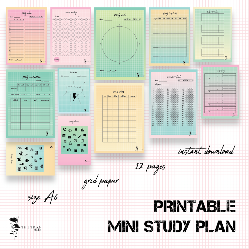 12 Pages Study Template A6;
