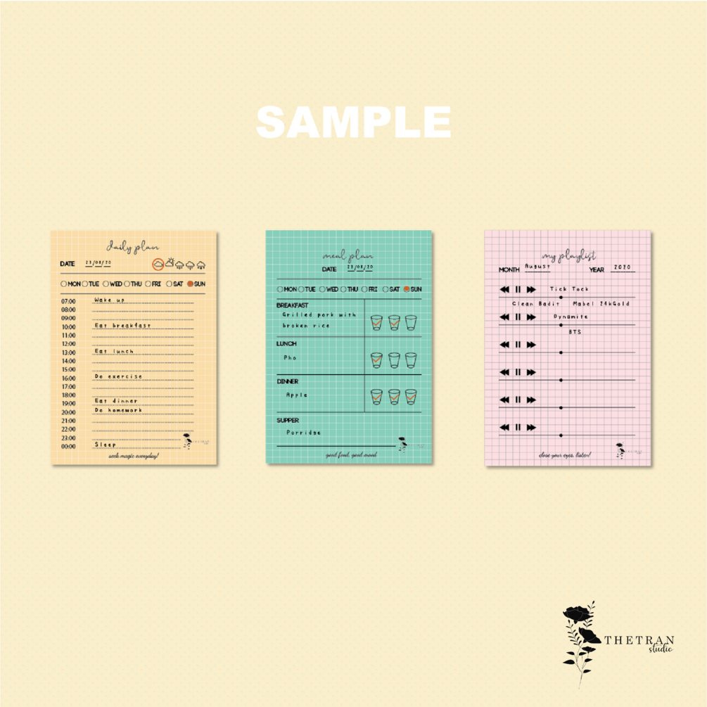 This is a DIGITAL ITEM for Online Purchasing includes 2 sets (planner & study template): a daily plan, weekly plan, monthly plan, yearly plan, expense, saving plan, travel, meal plan, habit tracker, goal tracker, my review, and playlist, flower, butterfly, deer, and planet stickers...